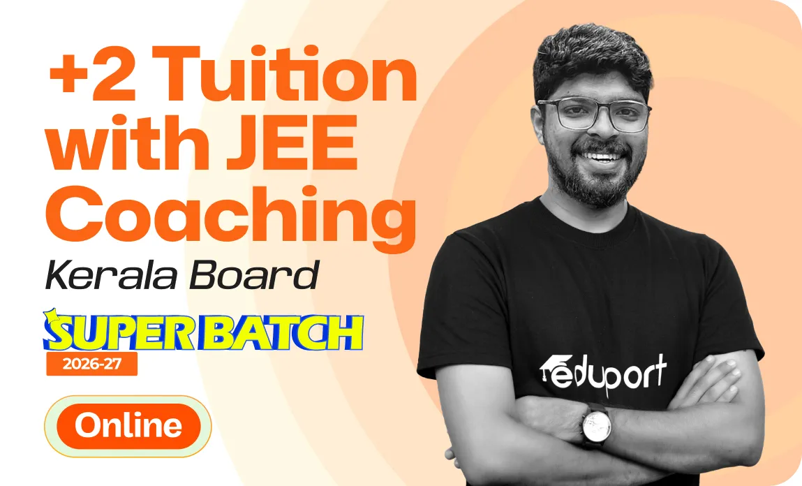 Eduport Plus Two Tuition with JEE Coaching offers 500+ class hours covering the entire Board and JEE syllabus, premium study materials with theory, practice problems, worksheets, and solved PYQs, along with 100+ tests for complete assessment. With Kerala’s best teachers from IITs, NITs, and engineering colleges, a question library with mistake book, quick digital notes, expert doubt clearance, personalized mentorship, and trend analysis with strategy sessions, the program ensures structured, effective, and result-driven preparation.