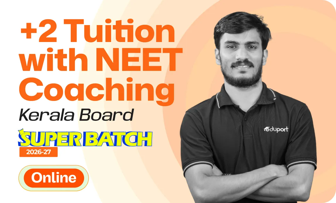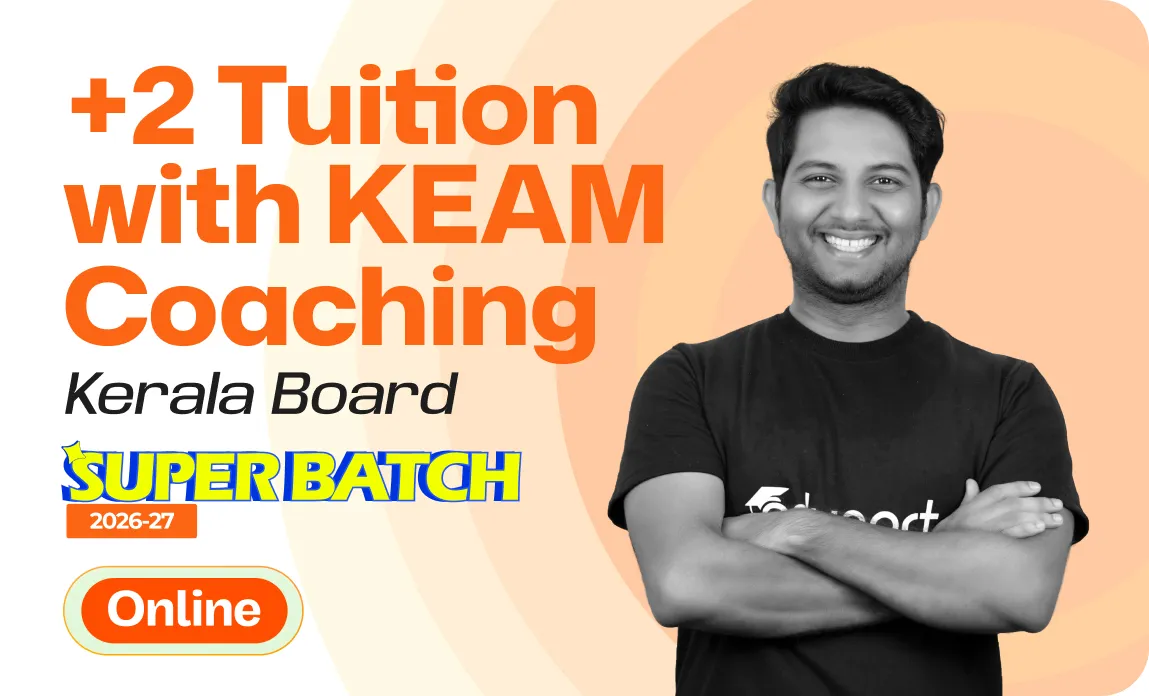 Eduport Plus Two Tuition with KEAM Coaching offers 500+ class hours covering the complete Board and KEAM syllabus, premium study materials with theory, practice problems, worksheets, NCERT exercises, and solved PYQs, along with 100+ tests for thorough assessment. With Kerala’s best teachers from IITs, NITs, and medical colleges, a question library with mistake book, quick digital notes, expert doubt clearance, personalized mentorship, and trend analysis with strategy sessions, the program ensures structured, effective, and result-driven preparation.