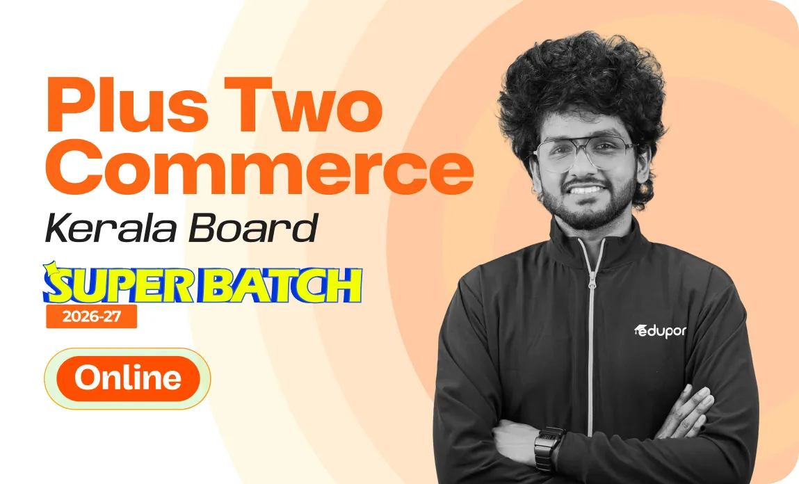 Eduport’s Plus Two Commerce program is a one-year online course for Kerala State Board students, offering recorded and live classes, premium materials, expert mentorship, and AI tools for thorough understanding and board readiness.