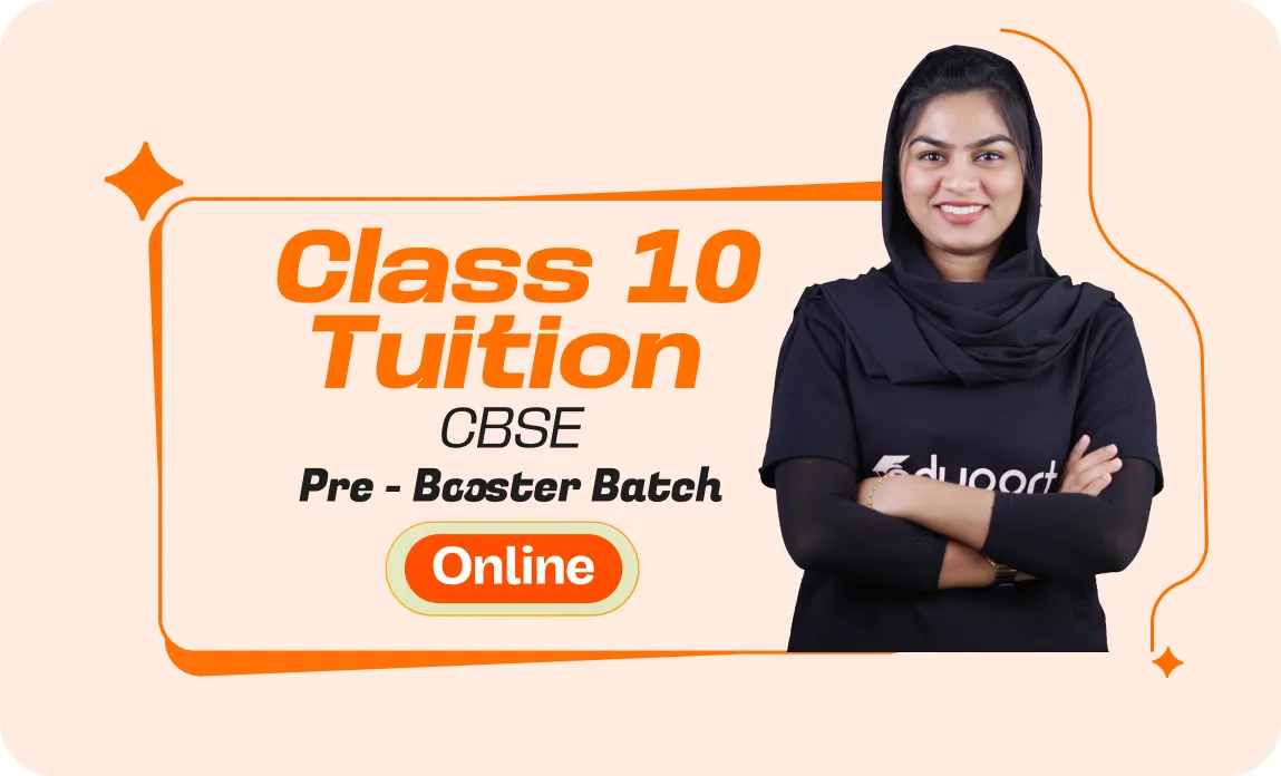 Eduport’s Class 10 CBSE Program offers 300+ class hours with complete syllabus coverage, 50+ board-level tests, Kerala’s best teachers, a question library with mistake book, quick digital notes, AI-enabled doubt clearance, personalized mentorship, and trend analysis with strategy sessions for effective exam preparation