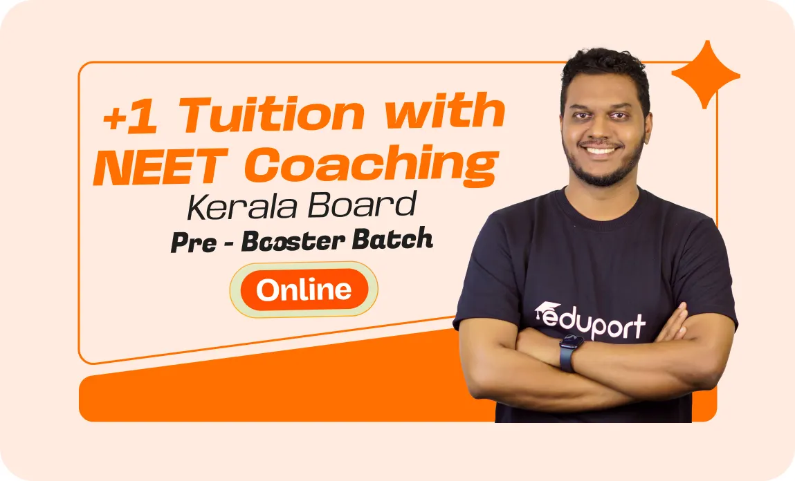 Eduport Plus One Tuition + NEET Coaching (CBSE) offers 500+ class hours covering the complete Board and NEET syllabus, premium study materials with theory, practice problems, worksheets, NCERT exercises, and solved PYQs, along with 100+ tests for thorough assessment. With Kerala’s best teachers from IITs, NITs, and medical colleges, a question library with mistake book, quick digital notes, expert doubt clearance, personalized mentorship, and trend analysis with strategy sessions, the program ensures structured, effective, and result-focused preparation