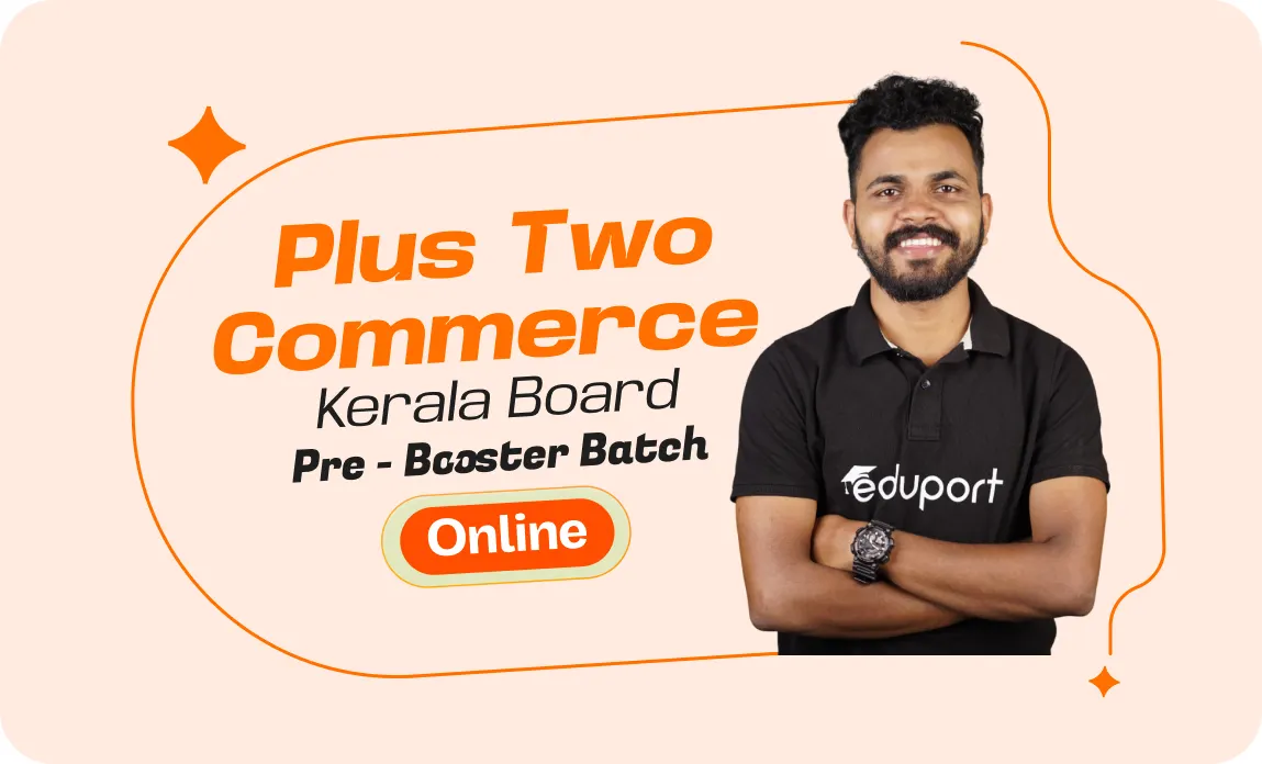 Eduport’s Plus Two Commerce program is a one-year online course for Kerala State Board students, offering recorded and live classes, premium materials, expert mentorship, and AI tools for thorough understanding and board readiness.